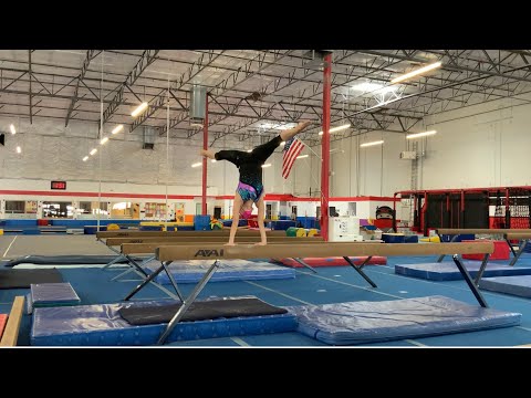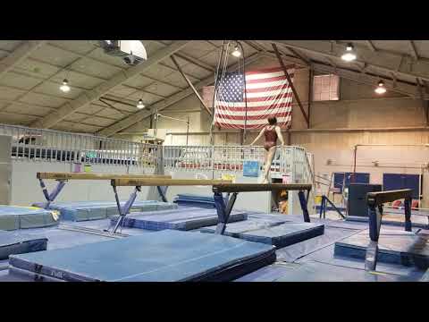 Competition Level: NAIGC Developmental Start Value: 10.0 Total Score: 8.8 Judge Comment: Good routine. Work to speed up the rhythm. On the T-in/out try not to put support on your hands, rather touch the beam in a controlled T. Work to turn on high toe. Keep up the great work!