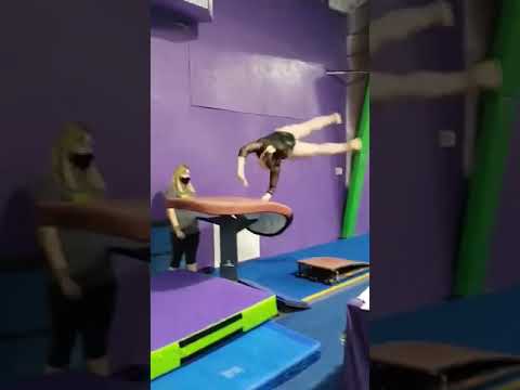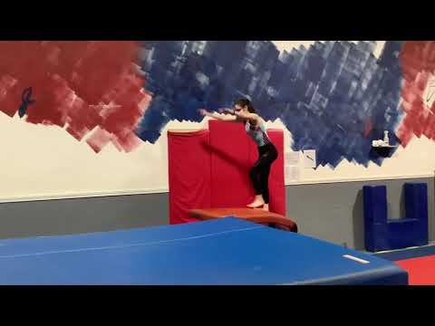 Competition Level: NAIGC Developmental Start Value: 8.5 Total Score: 7.4 Judge Comment: Keep working to have straight legs in the jump onto the table and off the table. Great control though from jump on and jump off.