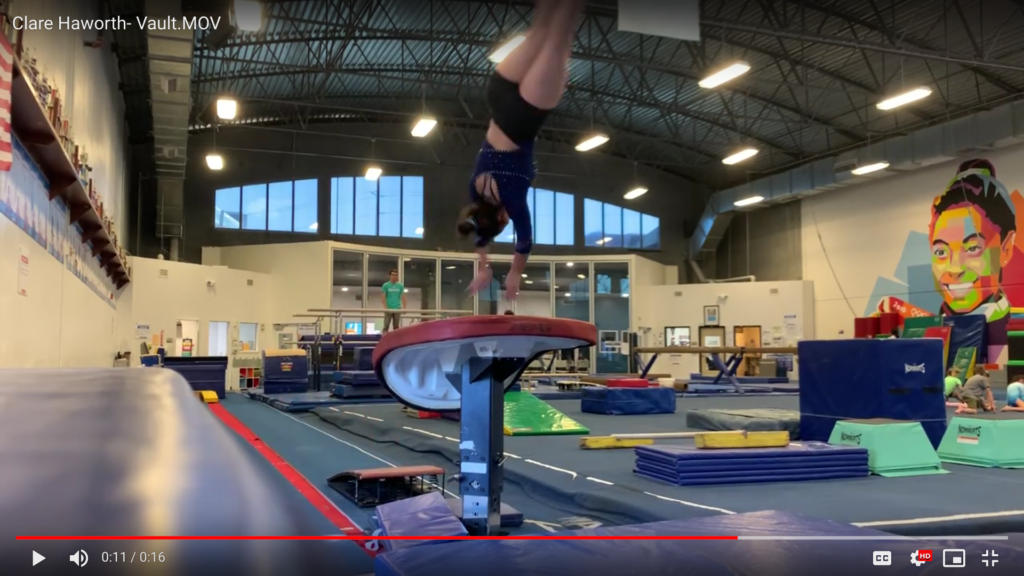 Competition Level: WAG NAIGC Level 8 Start Value: 10 Total Score: 9.2 Judge Comment: Great height and distance – pull tighter for rotation and better landing. Nice vault