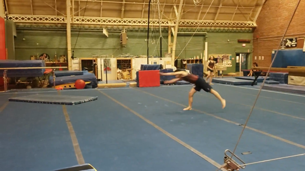 Competition Level: NAIGC Developmental Difficulty Score: 2.1 Execution Score: 8.6 Total Score: 10.7 Judge Comment: Not a bad routine! Clean up your form and work the landing of that front handspring!