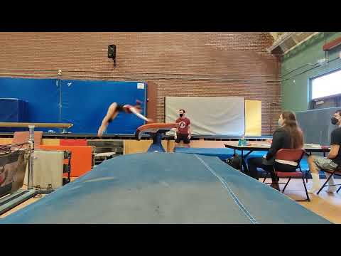 Competition Level: High Level Decathlon Start Value: 10.0 Total Score: 9.45 Judge Comment: Nice vault! Keep working on landing position, but preflight and height is great! You are plenty high and rotated to land with the chest slightly higher.