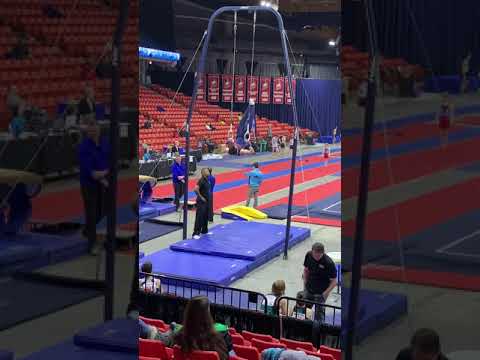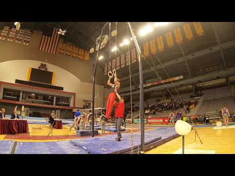 Competition Level: NCAA Difficulty Score: 2.0 Execution Score: 7.7 Total Score: 9.7 Judge Comment: .3 ND for no giant taken from the start value. Arm bend and legs lowering on Kip L. Only other real issue was that the dismount did not turn enough which is a .5 deduction and it becomes a back Layout.