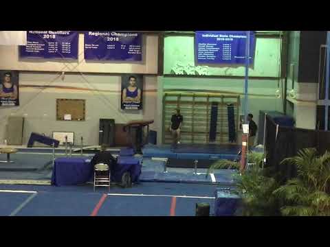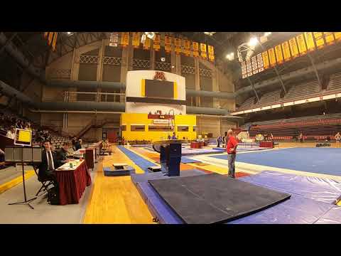 Competition Level: NCAA Difficulty Score: 5.2 Execution Score: 7.9 Total Score: 13.1 Judge Comment: off board / knees apart / set-up landing / fall