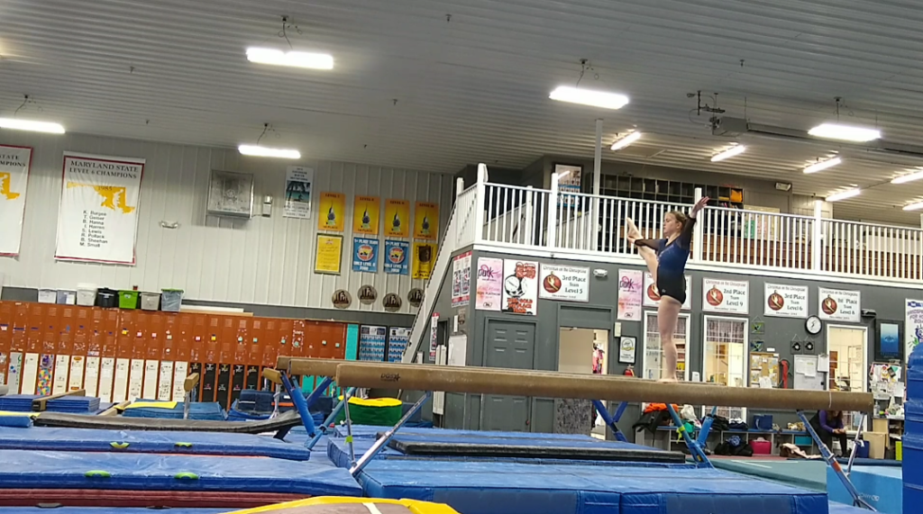 Competition Level: WAG NAIGC Level 8 Start Value: 10.0 Total Score: 9.0 Judge Comment: -.2 acro composition and -.1 dismount comp. – work on amplitude in jumps getting them higher off the beam. Solid routine!