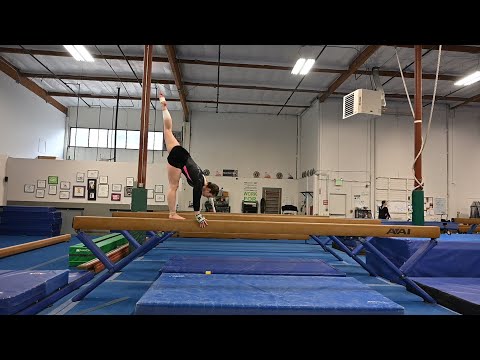 Competition Level: WAG USAG Xcel Platinum Start Value: 9.5 Total Score: 8.6 Judge Comment: The leap pass needs to have a jump (a straight jump is not in the code on floor) you could do a straight jump 1/2 or a tuck jump though! Good work, easy fix!